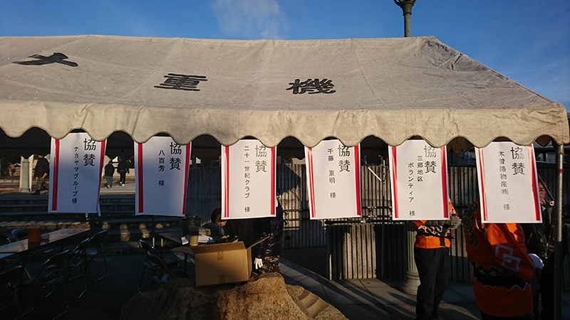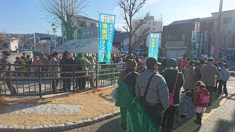 恵那市「七日市」の日 JR恵那駅前で「七草粥」の炊き出し配付を行いました。